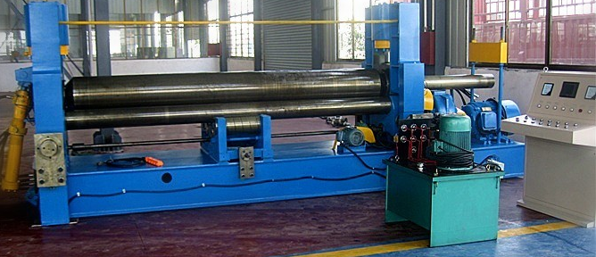 卷板機是對板材進行連續(xù)點彎曲的塑形機床,具有卷制O型、U型、多段R等不同形狀板材的功能。卷板機由于使用的領(lǐng)域不同,種類也不同。從輥數(shù)上分為三輥卷板機和四輥卷板機。三輥又分對稱式三輥卷板機,水平下調(diào)式三棍卷板機,弧線下調(diào)式卷板機,上輥萬能式三輥卷板機,液壓數(shù)控卷板機。從傳動上分機械式和液壓式。